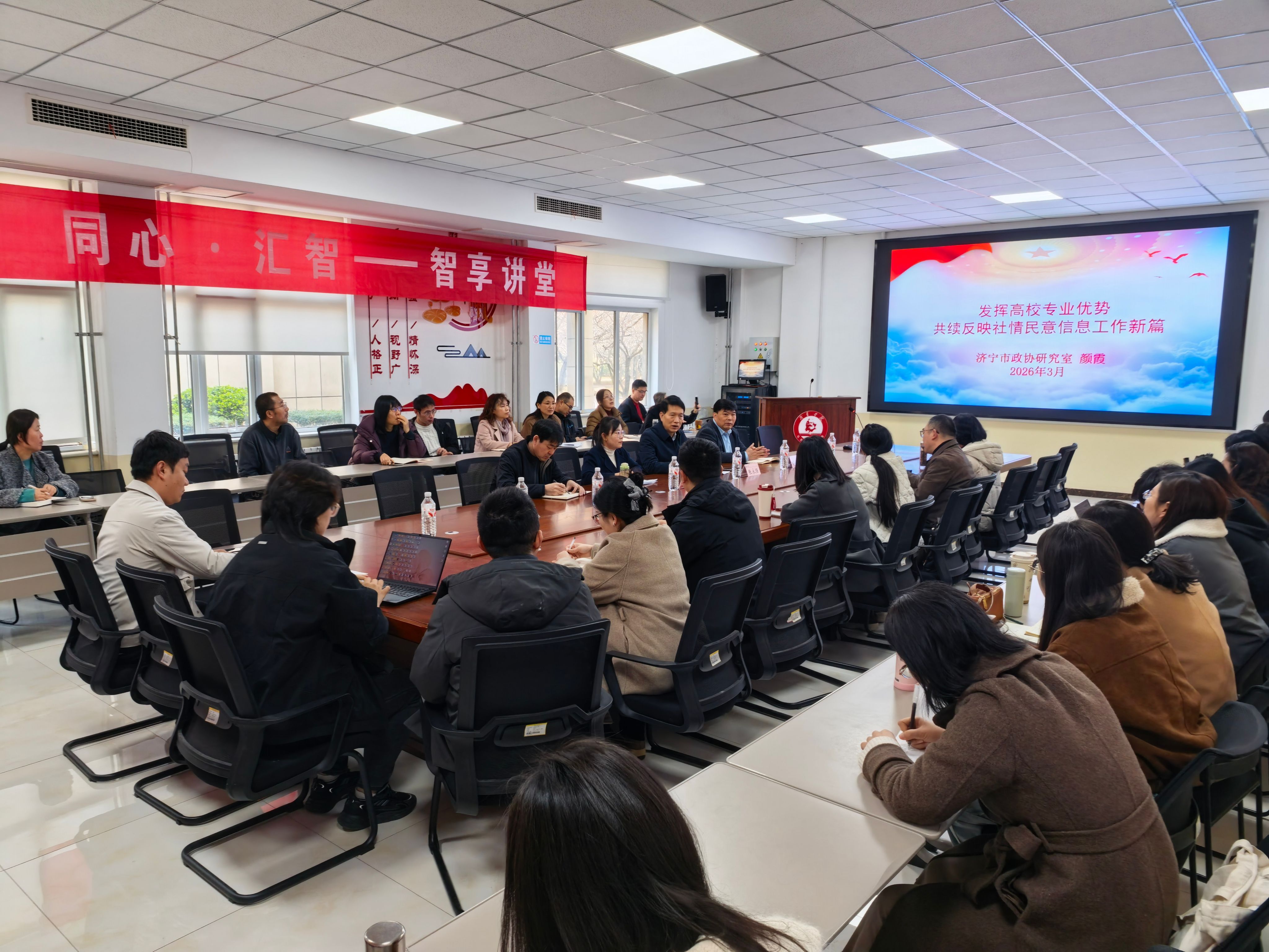 为提升我校教师参政议政能力,搭建校地统战交流合作平台,3月20日上午,党委统战部联合马克思主义学院,举办“同心·汇智”—...
