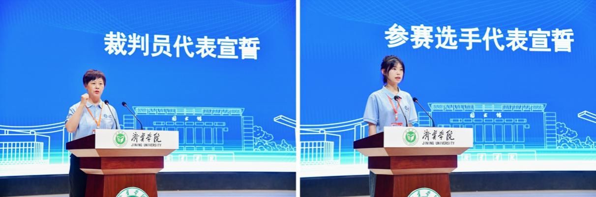山东理工大学孟秀霞教授,济宁学院孙雨晴分别代表全体裁判人员和参赛选手郑重宣誓。