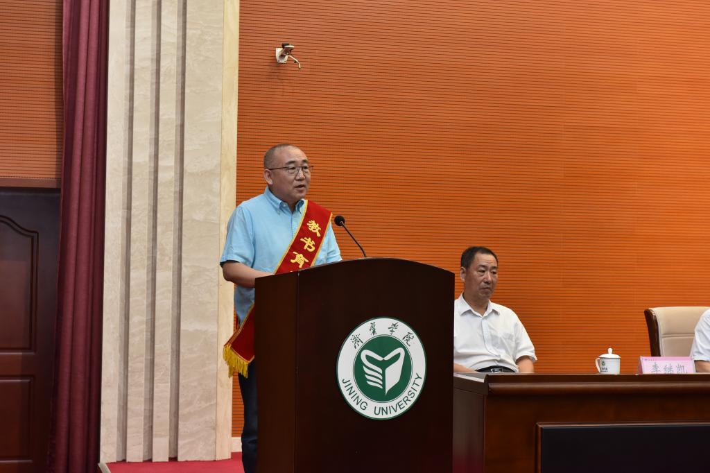 会上,“教书育人楷模”代表美术系教师司继琳结合自身工作实际作了热情洋溢的发言。他表示要继续默默耕耘,用无私的爱深深地感染、教育每一个孩子,用园丁的品质、春蚕的志向、蜡烛的风格、孺子牛的精神,为教育事业奋斗,把真诚的爱毫无保留地奉献给教育事业。