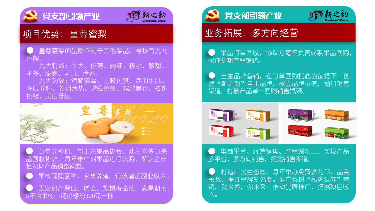 第一书记积极协助村“两委”通过市场调研和实地考察,努力找寻适合本村发展的项目。一年来,建成王仲口村鞋业加工厂,统筹建设“育肥牛舍”,引入光伏发电产业项目和 “皇尊蜜梨”订单式种植项目。在产业项目运作中,积极推动“党支部+合作社+村民”等“支部+”的运行模式。通过村党支部作为百姓致富的引领,在村集体、村民增收致富的同时,树立了党支部在百姓心中的威信、巩固了党在人民群众中的地位。