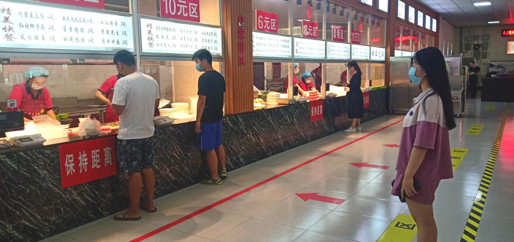 “从学校提供的爱心口罩、爱心饭票、爱心湿巾到志愿者的爱心帮助,耐心讲解;从宿舍楼实行的出入分离,地上贴的一米间隔线、设置的测温点;从餐厅的每一张桌子上都设置了隔板,每个人在固定的座位上就餐,这一系列的细节是学校带给我们的温度,这些关怀备至都是学校让我们真真切切感受到的温暖与踏实。”生命科学与工程系学生刘婷婷说。