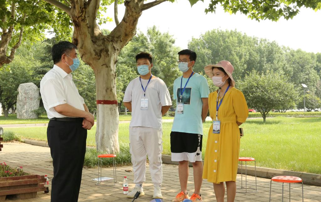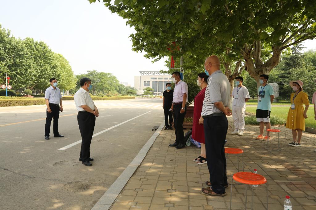 校党委书记郁章玉,党委委员、副院长王旭英分别来到报到现场,检查指导返校工作,详细了解学生报到情况,看望并慰问坚守一线的工作人员。郁章玉并与志愿者进行了亲切交谈,询问了学生返校后的情况,同时叮嘱志愿者同学们,认真做好同学们复学返校的服务工作,在自己的岗位上认真负责,为同学们提供切实帮助。同时希望同学们返校后珍惜时间,将有限的时间最大化,认真学习充实自己,做有用之才,为将来的发展打下坚实的基础。