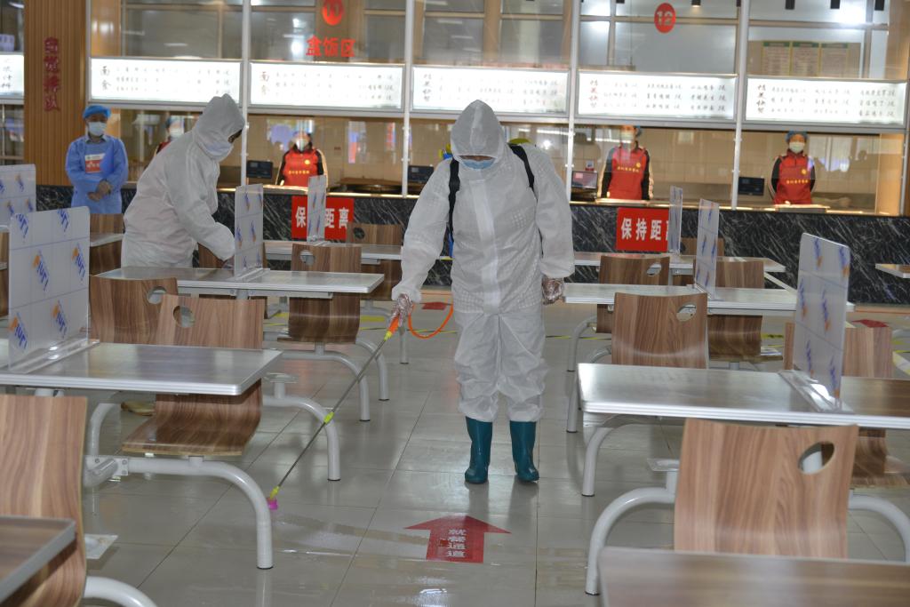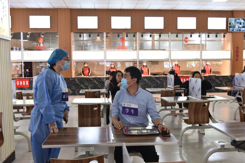 本次演练共设置了学校南大门、教学区、图书馆、宿舍区、食堂等场景。在场景演练中,对排队等待、行李和手部消毒、查看健康码、体温检测、课堂教学、自习区就座、进出宿舍楼、七步洗手、排队取餐、餐桌就座、餐具放回等环节,进行了实战操练。每个场景均设置了应急情况处置演练环节,模拟展示了学生突发体温异常应急情况处置流程,包括异常情况上报、心理安抚、引导体温异常者至留观点、复测体温、信息上报、人员登记、现场消毒、转诊等应急处置环节。整个演练过程严格按照方案规定流程进行,各个工作小组分工明确、协调有序,参演人员认真负责、密切协作,演练达到了预期效果。