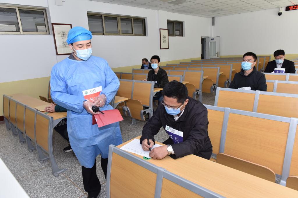 根据省教育厅关于2020年春季学期开学条件核验工作部署和有关要求,4月29日,我校举行2020年春季学期开学第二次模拟(应急)演练。校党委班子成员,曲阜市疾控中心、曲阜市人民医院特邀专家出席动员会并观摩指导。校疫情处置领导小组各专项组成员,各部门负责人,系(院)党总支(党委)书记、副书记,辅导员,有关部门工作人员参加和观摩演练。党委委员、副院长王旭英主持演练动员会并全程指挥。