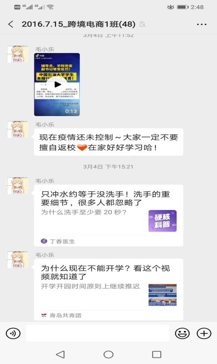 关注学生身心健康,加强日常管理,做好心理疏导。坚持线上考勤,确保联系到每一位分布在全省各地的学生,建立学生每日健康跟踪档案,实时掌握学生日常考勤、心理建设和身体健康报告,在线分享疫情防控期间防护措施、应对策略等知识,帮助学生消除排解心理恐慌与焦虑。