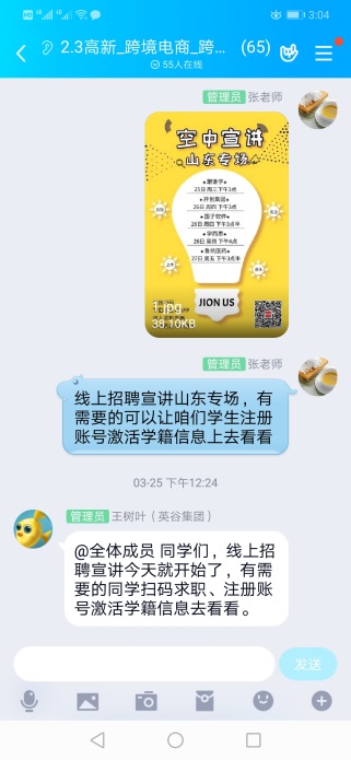 系指导老师和企业职业导师通过腾讯课堂、微信等形式,针对每个学生不同岗位意向,进行耐心细致的个性化指导,分享各类远程面试案例素材,提醒学生远程面试中的注意事项,对求职过程中出现的问题及时答疑解惑,为同学们防疫期间线上求职增加信心。