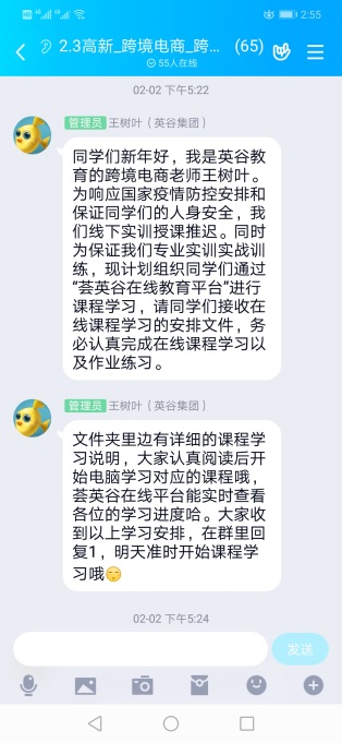 系领导班子多次召开视频会议,认真研讨,多方协调,积极寻求线上实习实训的可行性方案,有针对性地制定疫情期间《外国语系毕业实习学习指导意见》、《外国语系实习支教学习指导意见》等办法,指导师生进行线上实习实训。主动联系校企合作单位—英谷教育科技股份有限公司,沟通疫情防控策略,商讨毕业班跨境电子商务方向学生的实习实训工作,实现校企双方时时在线、实时互动、信息共享、策略共商的运营机制,确保实习实训和就业推荐工作如期开展。