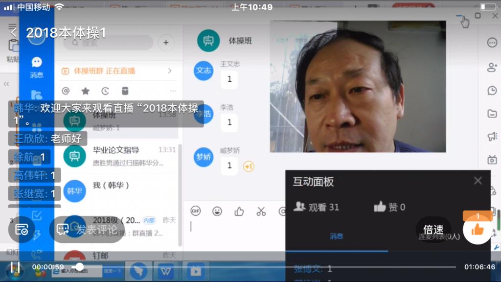 系主任韩华通过QQ、微信视频、钉钉直播工具,开展线上教学