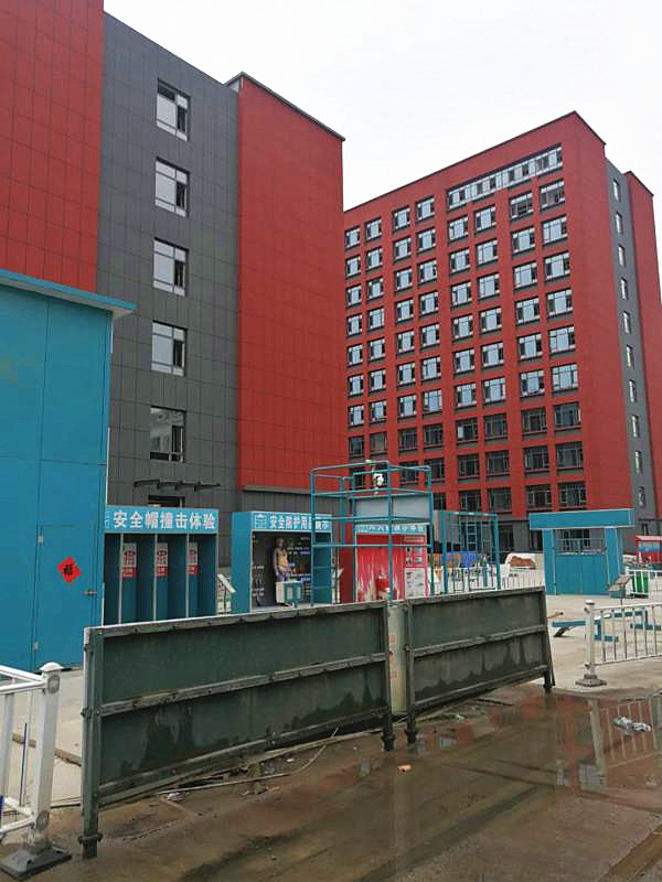 7号学生公寓楼位于学生生活区最北端,由北楼和南楼两部分构成的“U”型结构,总建筑面积31508㎡,层高3.6m,共585个房间。北楼部分11层,高度40.65m,设计为4人间,设置电梯4部。南楼部分6层,高度22.65m,设计为6人间。目前,该工地屋面及卫生间防水、内墙面腻子全部抹完;地面砖、墙面砖及大理石镶贴基本完成;铝合金门窗安装基本完成;房间进户门安装完成约90%;外墙面真石漆粉刷完成约95%。综合目前新冠疫情防控情况,整个组团项目预计将于2020年5、6月份竣工。