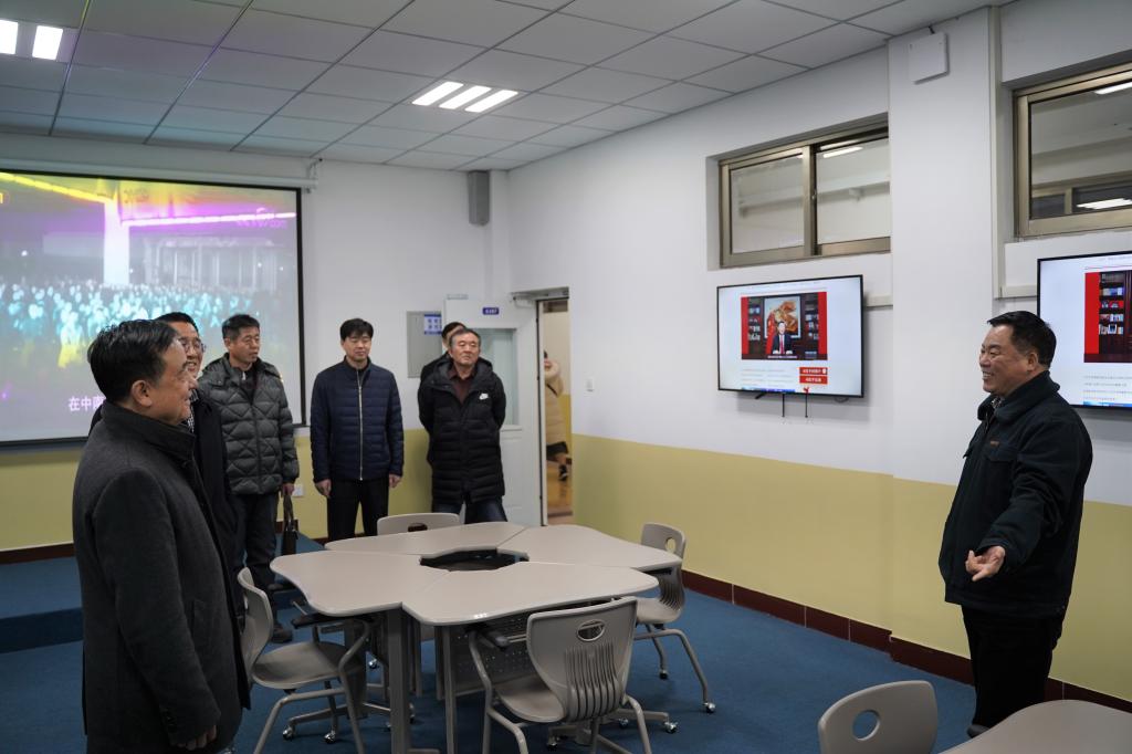 随后,吕灵昌陪同王波一行参观考察智慧教室。
