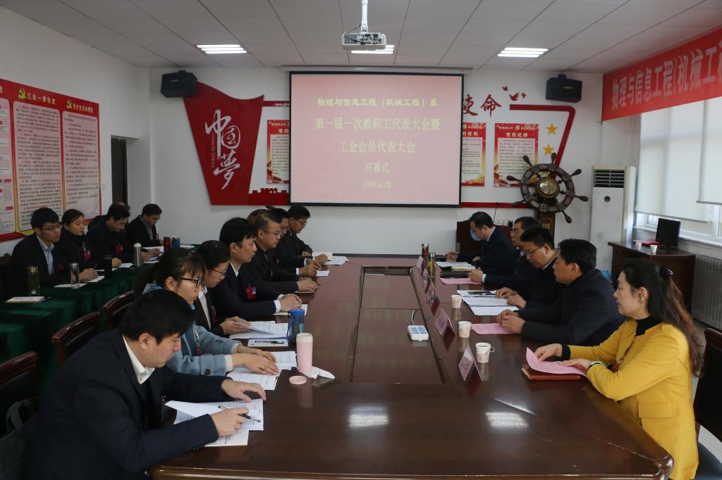 12月28日,物理与信息工程(机械工程)系第一届一次教职工代表大会暨工会会员代表大会隆重召开。校党委副书记马恩、工会主席史仍洲出席。