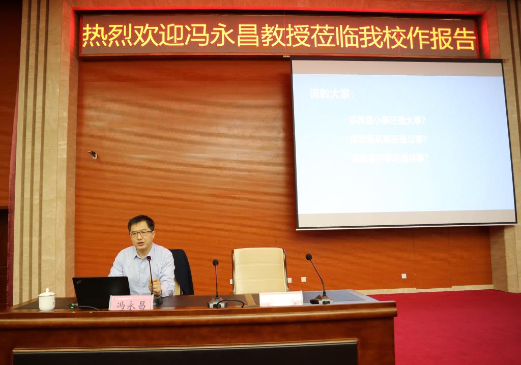 报告中,冯永昌教授围绕宗教工作的意义和重要性、宗教工作基本知识、当前宗教问题面临的形势和正确对待高校学生信教现象四个方面,全面分析了我国当前宗教工作面临的形势和任务,深入解读了习近平总书记关于宗教工作的重要论述,系统地阐释了我国宗教工作的基本方针和政策,并结合高校工作的特点,就如何做好高校宗教工作进行了深入浅出的论述。