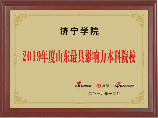 近日,2019年度山东教育盛典荣耀榜单盛大发布,济宁学院荣膺“2019年度山东最具影响力本科院校”奖。与此同时,在2019年度山东教育新媒体宣传奖评选活动中,济宁学院喜获“山东高校校园文化宣传奖”。