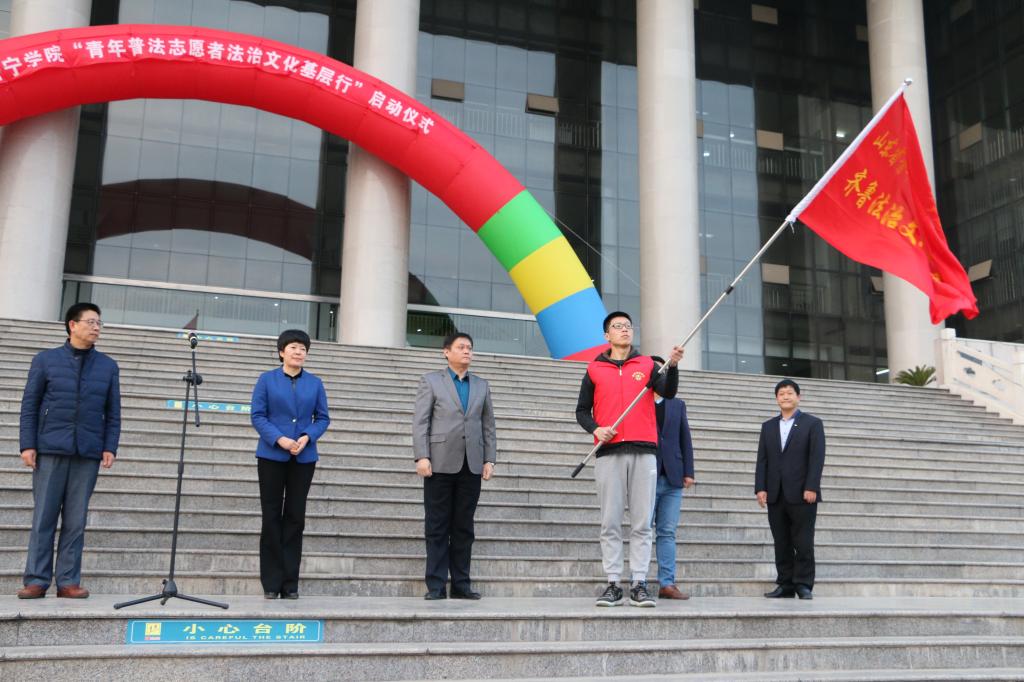 仪式上,颜志强为我校青年普法志愿者服务队授旗。我校志愿者代表郭聪同学发言。