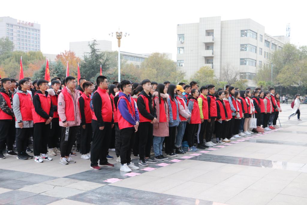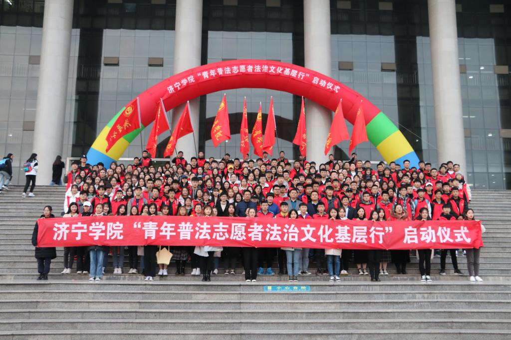 11月21日下午,圣贤广场上旗帜飘扬、气氛热烈,我校“青年普法志愿者法治文化基层行”启动仪式在此隆重举行。校党委副书记马恩,曲阜市委常委、政法委书记李洁出席仪式。曲阜市委政法委副书记颜志强、曲阜团市委书记刘海韵、曲阜市司法局副局长乔德文以及学校党委宣传部、团委等相关部门同志与我校300余名青年普法志愿者一同参加仪式。启动仪式由校团委书记马新蕾主持。