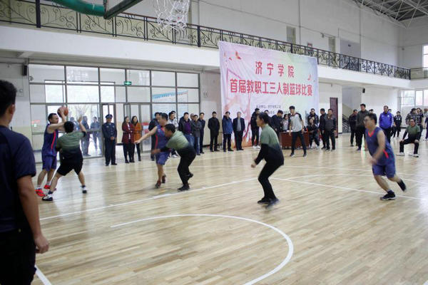 为推进全民健身运动,丰富教职工的文化生活,切实提高教职工身体素质,11月21日,由校工会主办,体育系、教职工篮球协会承办的济宁学院首届教职工三人制篮球赛在体育系体育馆拉开帷幕。校党委副书记马恩、有关单位负责人和来自24个单位的30支参赛队参加了开幕式。开幕式由工会主席史仍洲主持。
