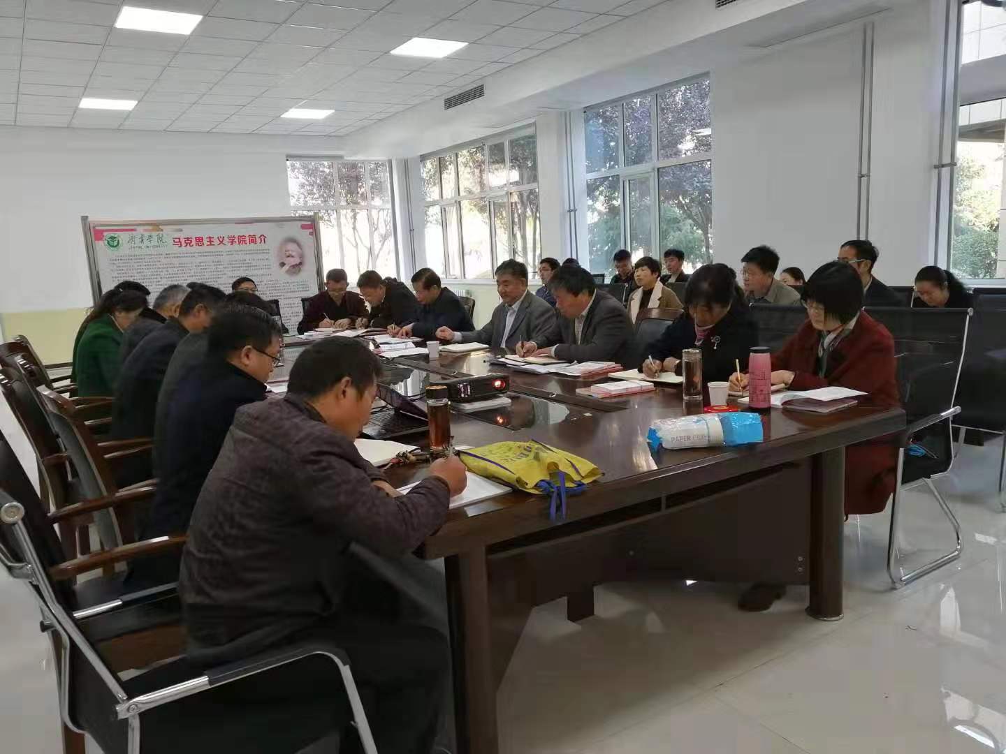 11月14日上午,学校在马克思主义学院会议室召开2019—2020学年第一学期“形势与政策”课集体备课会。学校党委书记郁章玉参加备课会并讲话。党委宣传部部长邓新民、部分系(院)党总支书记(副书记),马克思主义学院领导班子成员和承担“形势与政策”课教学任务的辅导员、团总支书记、思政课教师,初等教育学院、学前教育学院的教师代表共40多人参加集体备课会。备课会由马克思主义学院院长颜景虎主持。
