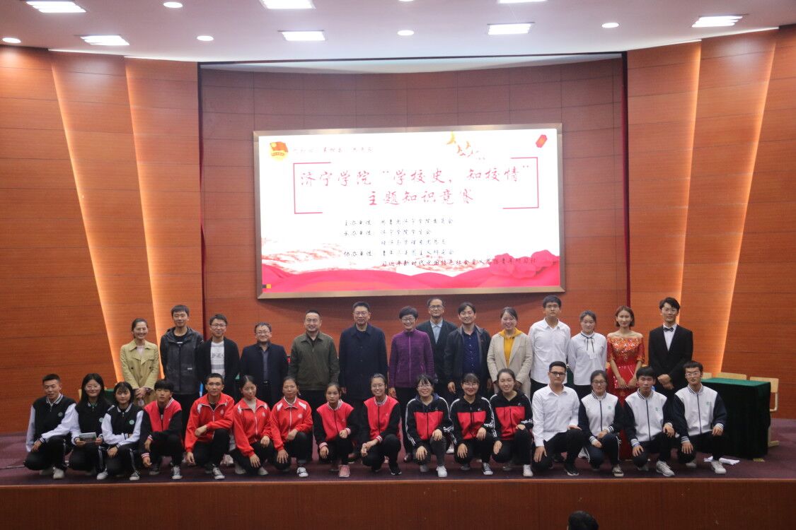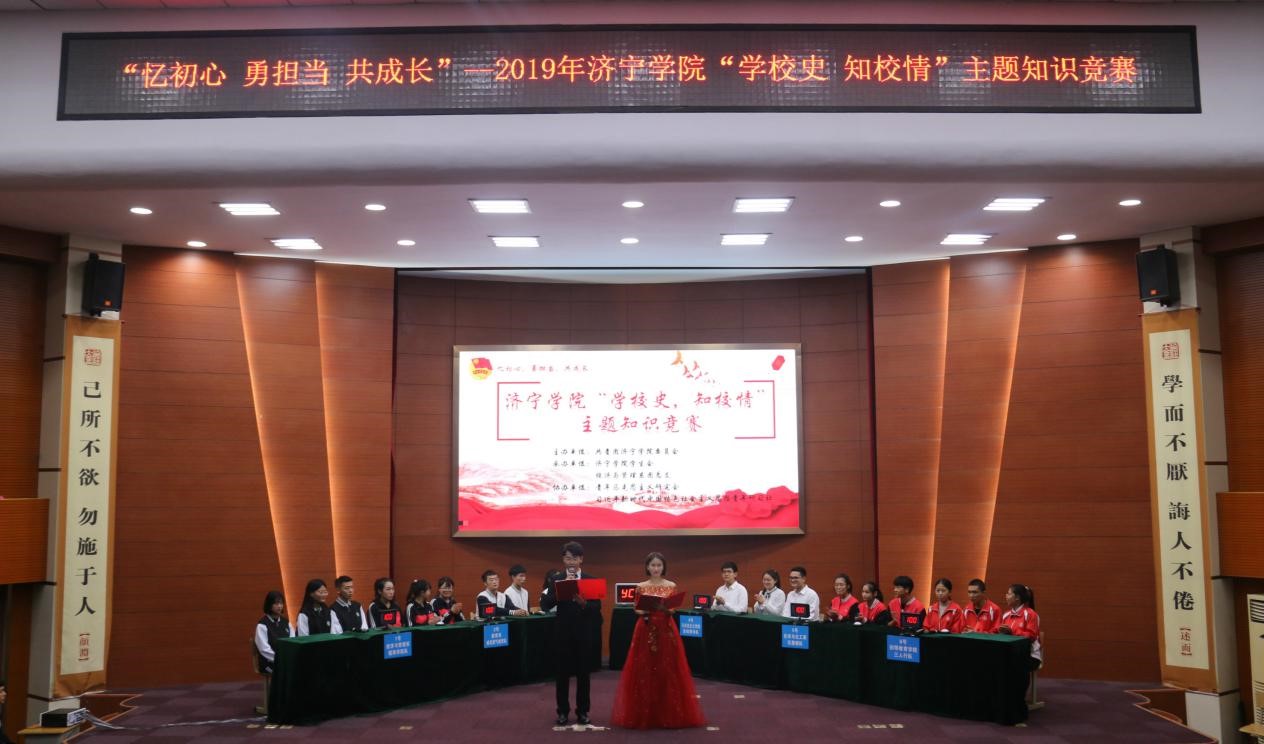 此次知识竞赛以“忆初心、勇担当、共成长”为主题,是2019年济宁学院“学校史 知校情”主题活动月的重要内容之一。比赛前期校团委印发了《“学校史,知校情”主题活动学习资料》,组织各系院师生参观校史馆,开展了主题团日活动和一系列学习校史校情的文化活动,旨在充分利用党史、新中国史和校史资源,构建共青团宣传教育体系,以文化人,以文育人,培养同学们知校、爱校、兴校、荣校的情怀,激发我校学生爱国爱校的使命感和责任感,并将爱国之情转化为报国之志、强国之行。