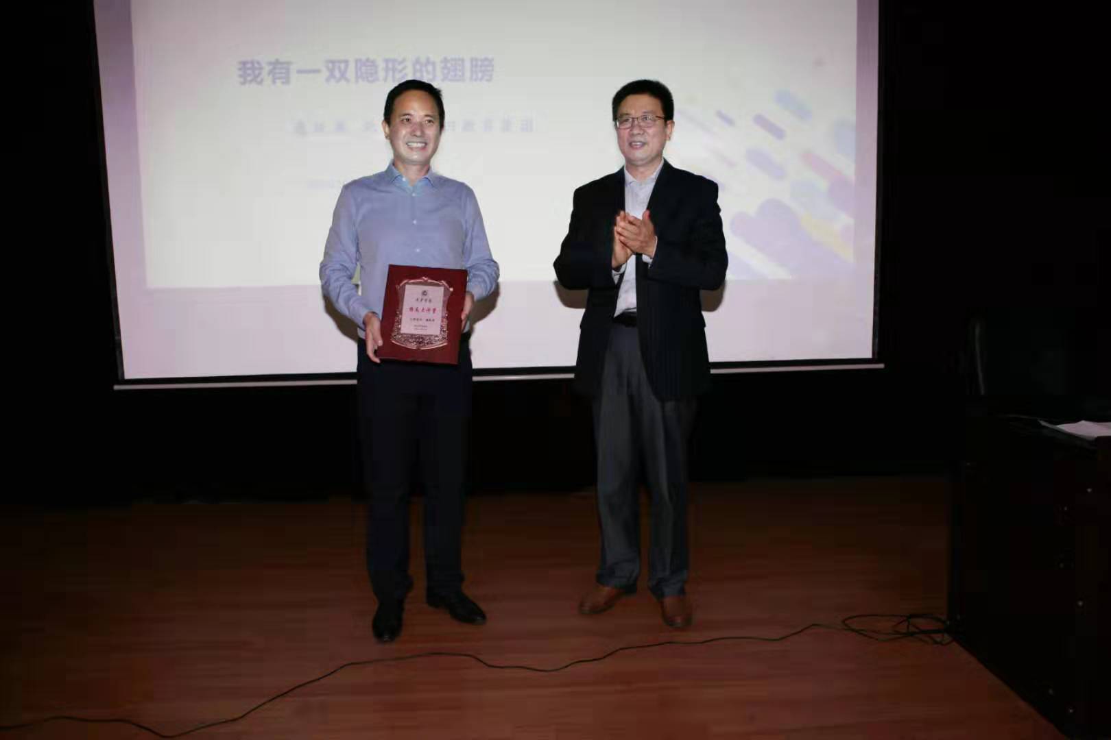 报告会上,潘跃勇校友以《我有一双隐形的翅膀》为题从自己的求学经历出发,回顾了30多年的职业发展历程,用鲜活生动的事例阐述了学习在改变人生,走向成功过程中的重要性。他勉励莘莘学子要秉承学校的优良学风,用读书、写作、旅游、健身充盈自己的求学生涯,做一个有责任有担当的新时代青年。他还希望大家要尽早确立目标、做好人生规划,用坚持和行动书写灿烂辉煌的人生篇章。