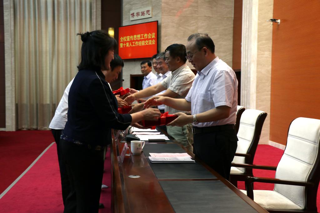 在育人工作经验交流环节,大学外语教学部主任徐继宁、化学与化工系党总支书记郑宁、马克思主义学院院长颜景虎分别围绕课程育人、科研育人和思政课育人作了现场典型发言,8个单位以书面形式作了经验交流。此外,会议还表彰了学校新闻宣传工作先进单位、先进个人和“十佳网站”、 “十佳新媒体”、“新媒体创新之星”。