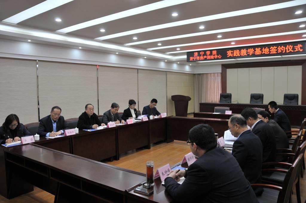 签约仪式上,朱松涛代表学校向房产测绘中心授牌并致辞。李传银与顾怀诗分别代表双方签署了济宁学院实践教学基地协议。朱勇代表济宁市住房和城乡建设局对双方的合作表示热烈的欢迎,并对合作提出了希望。顾怀诗详细介绍了房产测绘中心目前的工作业务范围和未来双方合作的内容。