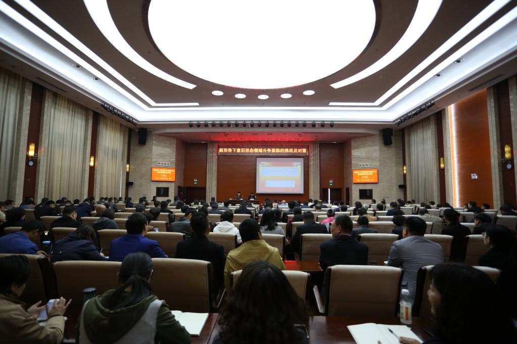 报告会上,李建昌少将运用大量生动鲜活的事例,系统阐述了新形势下意识形态领域面临的新情况、新问题、新挑战,深刻分析了意识形态领域斗争的复杂性、紧迫性、重要性。他指出,境外敌对势力从未放弃对我国特别是青年一代的思想渗透与文化颠覆,作为高校教育工作者,必须要深刻认识新时代的新特点,深入研究青年学生思想成熟的规律与特点,从而帮助他们在纷繁复杂的社会思潮和社会问题中把握正确的政治方向与观点认识,牢牢把握党对学校意识形态工作的领导权和话语权。整场报告内容丰富、联系实际、旁征博引,对准确把握和深刻理解意识形态领域的形势,做好意识形态领域的工作具有重要而深刻的现实意义和指导作用。