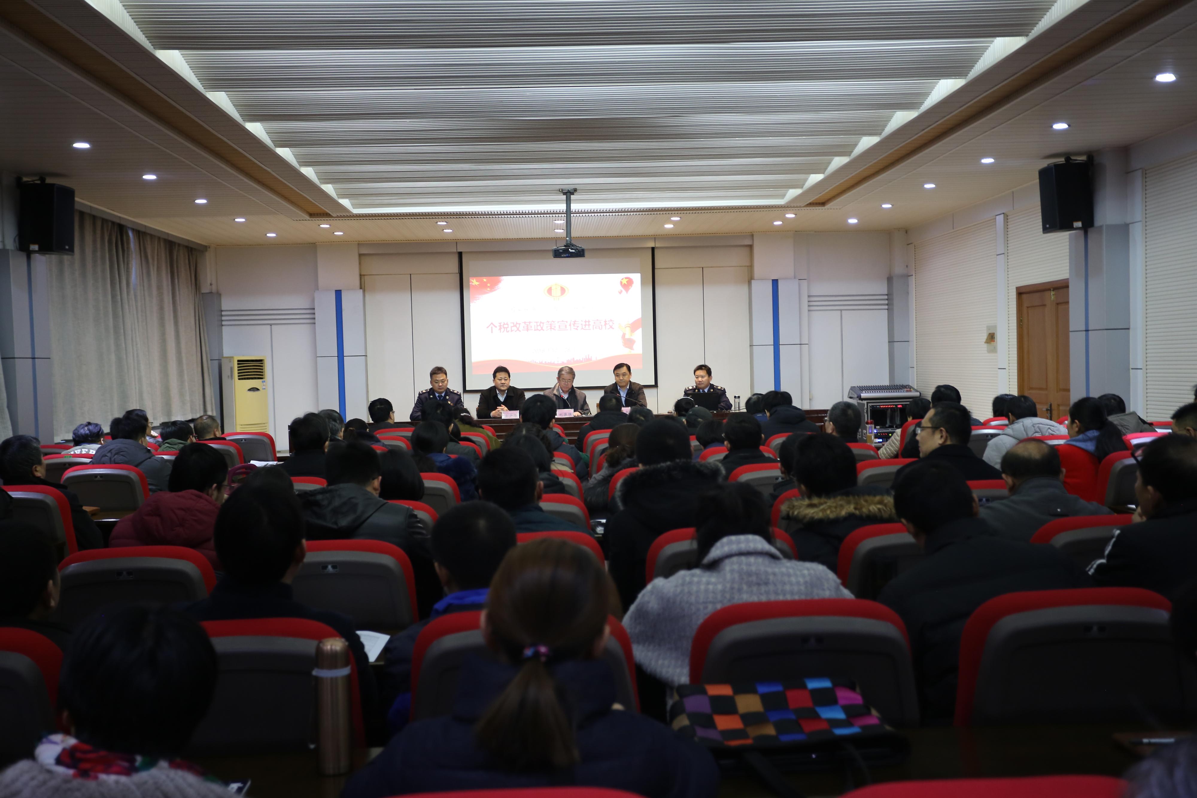 12月28日,我校召开个人所得税专项扣除工作会议,将个税改革的相关政策清晰透彻的传达给每一位教职工。党委副书记、校长吕灵昌,党委委员、副院长刘德胜,各单位负责人和部分职工代表参加此次工作会议,同时参加此次会议的还有国家税务总局曲阜市税务局党委书记、局长宗少华同志,国家税务总局曲阜市税务局党委委员、副局长赵晓光同志,国家税务总局曲阜市税务局第二税务分局局长邢彦同志,国家税务总局曲阜市税务局税政二科科长、曲阜市税务局个税领导小组办公室主任宋纯平同志。
