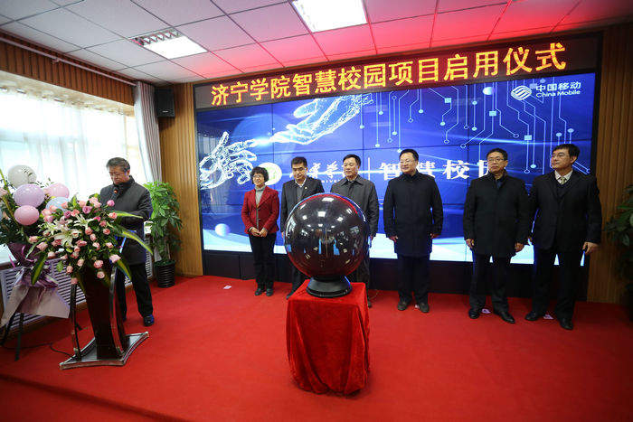 为提升我校信息化水平,实现信息互连互通和全面共享,12月28日上午,学校在智慧教室总控室举行“智慧校园”项目启用仪式。校党委副书记、院长吕灵昌,中国移动通信集团山东有限公司济宁分公司总经理邓克锐、曲阜分公司总经理李然,各系(院)、各部门负责人出席启用仪式。启用仪式由校党委委员、副院长刘德胜主持。