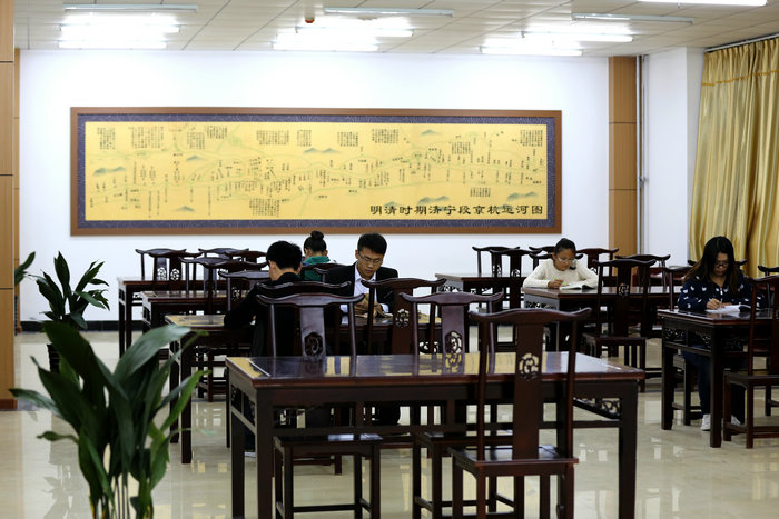 孔子学堂。我校孔子学堂设在图书馆,是山东省29个率先批准建立的高校孔子学堂之一,是我校传承与弘扬中华优秀传统文化的重要阵地。孔子学堂以“培育和践行社会主义核心价值观,弘扬中华优秀传统文化”为主要目标,以“写好字,读好书,做好人”为宗旨,通过举办大学生国学经典诵读班、传统文化讲座、经典重现戏剧展演、手抄《论语》书法竞赛等活动,让青年学生从中华优秀传统文化中汲取智慧、启迪人生、滋养心灵,担负起在现代社会弘扬优秀传统文化的使命。