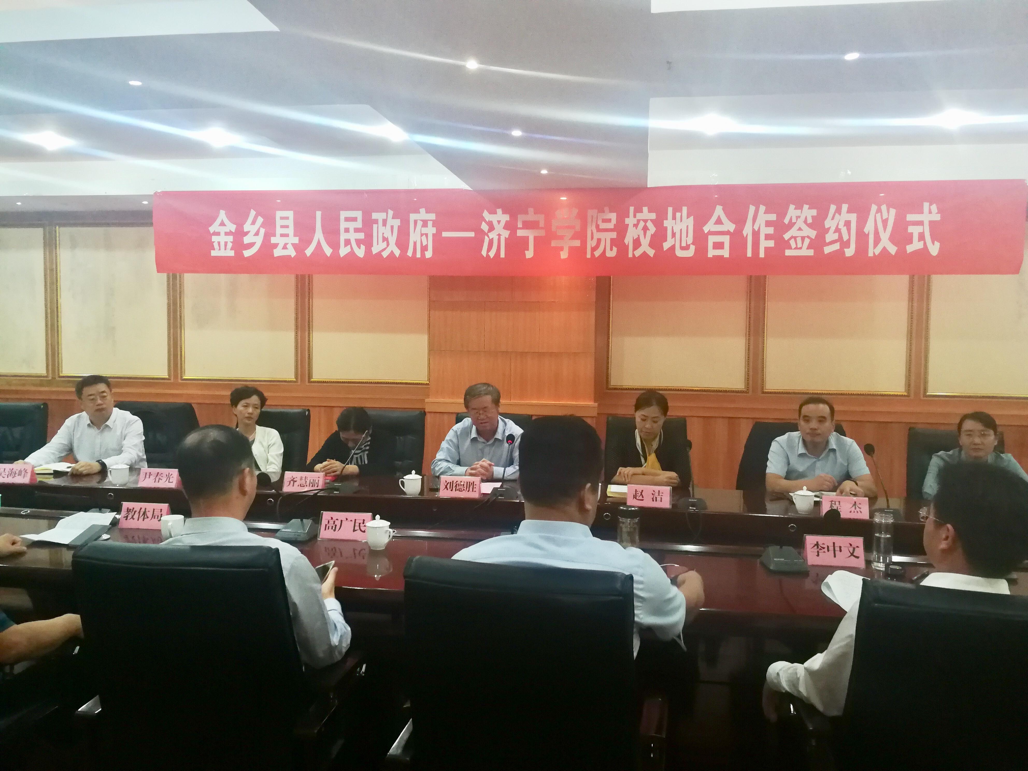 签约仪式上,刘德胜代表学校感谢金乡县人民政府对学校发展的支持和帮助,对金乡县近年来快速发展,取得的丰硕成绩表示祝贺。他指出,在当前全省新旧动能转换、聚焦十强产业的大背景下,学校与金乡县人民政府开展合作,对提升学校服务区域经济社会发展能力,切实提高人才培养质量具有积极促进作用。校地双方合作潜力大、空间广,希望双方以此次战略合作为契机,在智能制造、化学化工、生物技术、电气自动化、计算机软件、经济管理等领域开展广泛深入合作,为地方经济发展提供智力支持和人才服务,推动学校教学科研和金乡县经济社会的共同发展。