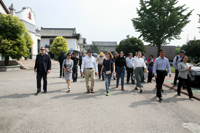 来自各国教育领域的友人们,兴致勃勃地参观了万里题词碑、礼堂、万里图书馆、清代考院、 “工”字楼、万里读书教室等处,客人们被校区深厚的历史文化底蕴、特色校园建筑、特色教育深深吸引并不时询问及交流。