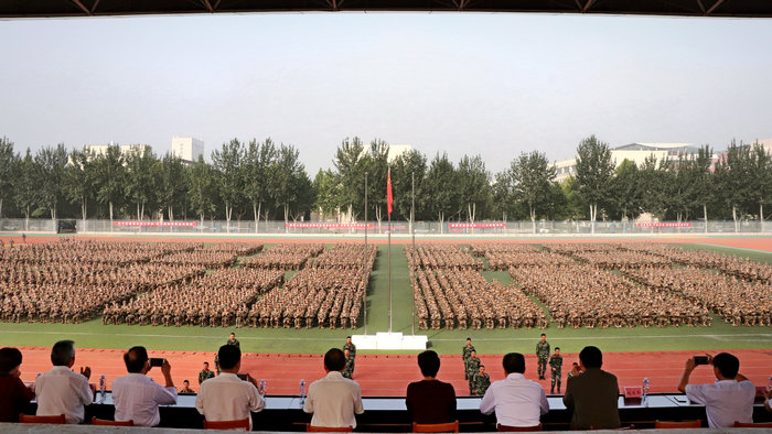 各系(院)、各部门主要负责同志,承训部队官兵、新生辅导员以及2018级全体参训学生参加了大会。