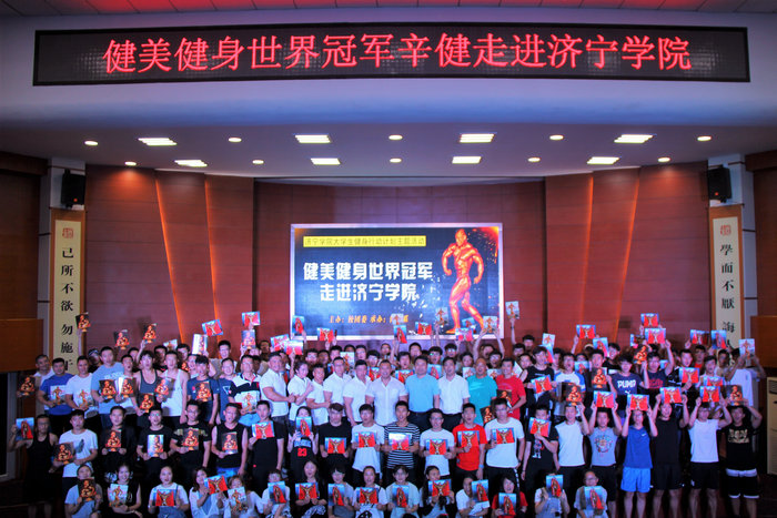 下午,“世界冠军进校园”活动在我校理科楼报告厅热烈举行,校团委书记马新蕾、体育系党总支副书记辛亚杰、团委副书记蒿鹏,部分教师代表,济宁市健美协会以及我校400余名健美健身爱好者一起参加了活动。活动由体育系团总支副书记马腾主持。