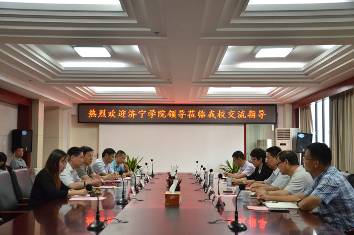 合肥学院党委委员、副校长刘建中,公共体育教学部主任许大庆、团委书记杜鹃等热情接待我校考察团,并在南艳湖校区办公楼召开座谈会。会上,刘建中对我校考察团表示热烈欢迎,介绍了合肥学院办学概况,以及近年来学校的特色发展成效。马恩对合肥学院的热情接待表示感谢,简要介绍了济宁学院的办学基本情况,并表明此行的目的。