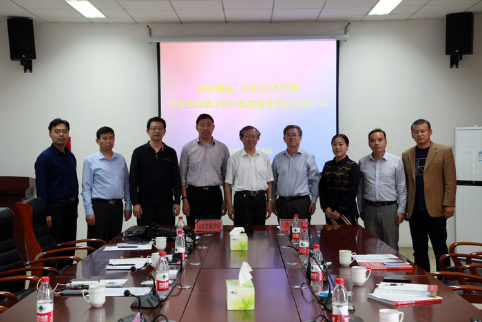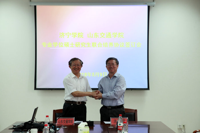 5月9日,我校与山东交通学院签订了专业学位硕士研究生联合培养协议,签约仪式在山东交通学院长清校区举行。校党委委员、副校长刘德胜,山东交通学院副校长孙云早出席仪式,并分别代表双方签署合作协议。山东交通学院研究生处、信息科学与电气工程学院、船舶与轮机工程学院,济宁学院科研处、物理与信息工程(机械工程)系相关负责人参加了签约仪式。