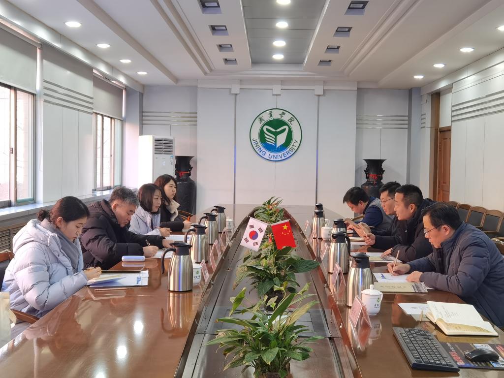 随后双方在二楼会议室就两校校际合作项目进行深入沟通和交流。会上外国语学院党委书记陆波介绍了外国语学院的办学情况,并探讨了外国语学院师生赴韩京大学交流学习的可能性。国际教育学院副院长李刚介绍了学校的学科专业、办学特色和国际合作等方面的情况,希望双方能够加深沟通了解,加强交流合作。韩京大学对外协力本部部长柳昊烈教授介绍了韩京大学的基本概况并提出合作意向。通过深入探讨,双方在师生互派交流、学生短期游学、共建海外中华文化研究中心等方面达成初步合作意向。