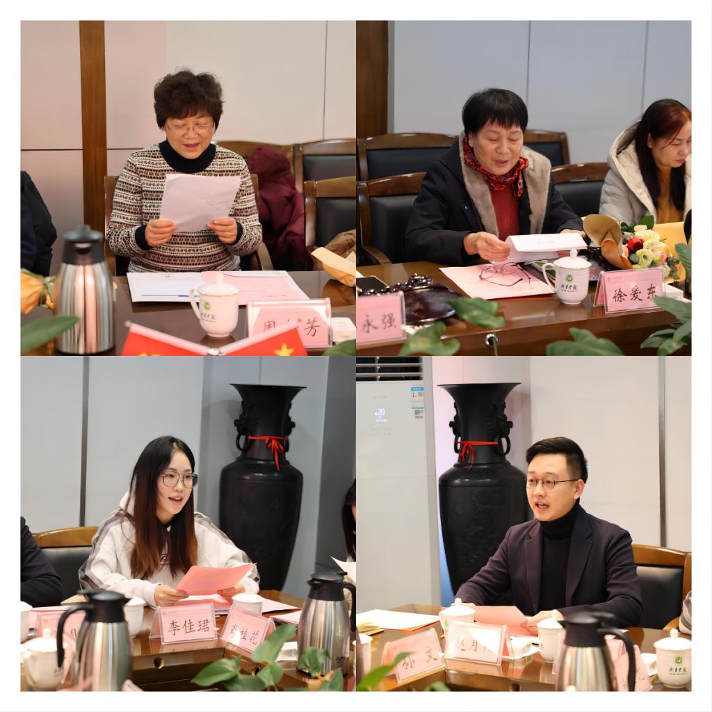 周新芳、徐爱东代表退休教职工发言。她们满怀深情回顾了几十年来与学校一路同行的历程,表达了对学校、对学生、对教育事业的热爱、眷恋和感激、难舍之情。并表示退休后将不忘初心使命,继续为学校的建设和发展贡献力量。儒商学院赵月阳博士代表青年教师发言,数学与计算机应用技术学院李佳珺同学代表学生发言,分别表达了退休教职工的崇高敬意、真挚感谢和衷心祝福。