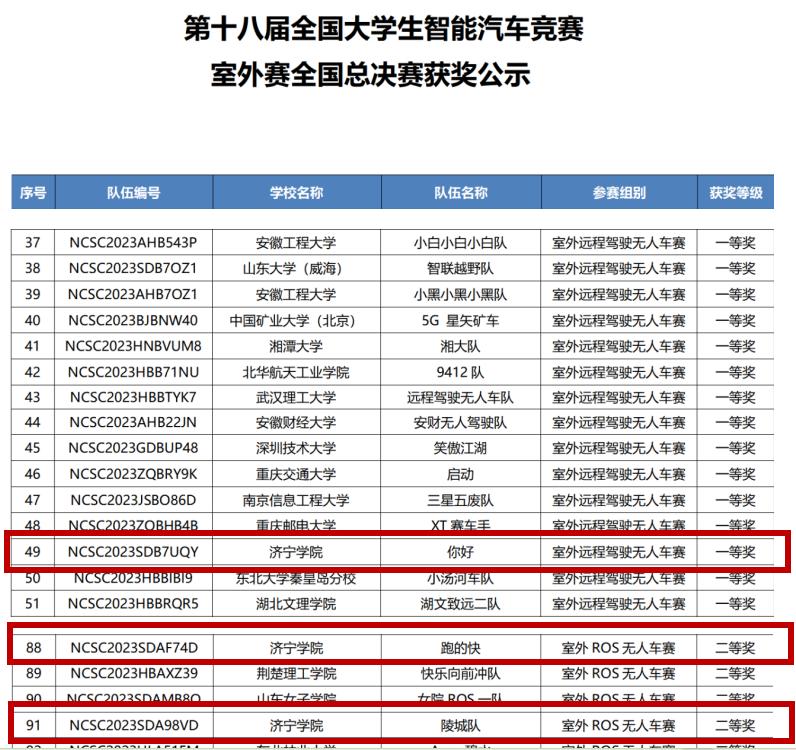 我校物理科学与智能工程学院进入总决赛的3支队伍,在室外5G远程驾驶无人车比赛中荣获国赛一等奖1项,在室外ROS无人车比赛中荣获国赛二等奖2项。在国赛备战期间,参赛学生在前期基于激光雷达的实现方案基础上,充分融合机器学习随机森林算法,进一步极大提升了无人车性能,经过不懈努力、重复测试、优化模型,最终在比赛中荣获佳绩!