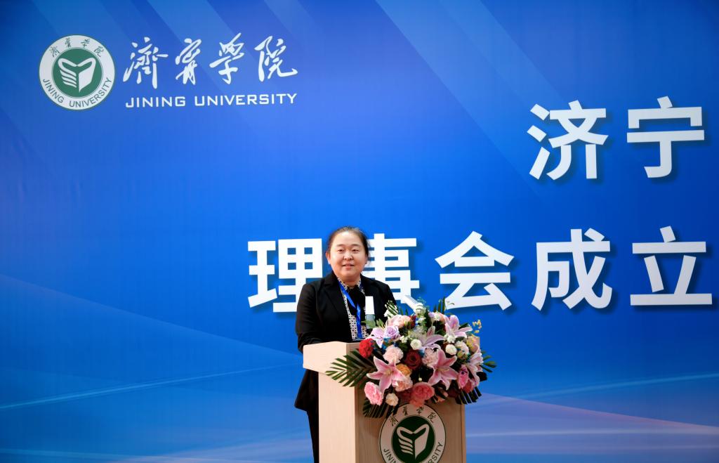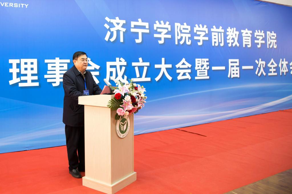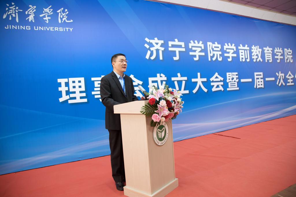 陈璟代表山东省学前教育中心向理事会成立表示祝贺。她指出,济宁学院学前教育学院理事会成立是顺应学前教育发展新形势,促进学前教育专业实现质量提升和内涵发展的新举措,搭建起产教融合、校企合作、专业交流的良好平台。她相信,学前教育学院借此平台,一定能够进一步发挥办学优势,乘势而上、顺势而为,为学前教育事业作出新的更大贡献。
