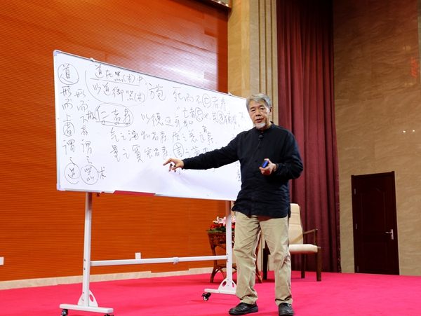 报告会上,王守常教授围绕学习贯彻习近平总书记弘扬优秀传统文化重要讲话精神,从“中国”二字的解读、中国智慧强调“一分为三”、把我们的文化价值观宣扬出去、读经典不可断章取义、“和”强调多元化和多样性等方面就如何认识中国文化传统,如何认识儒学在中国文化中的主流地位,如何把握中国文化的特征及中国哲学等方面的问题,进行了深入独到的讲解。他首先对2013年11月26日习近平总书记到曲阜视察的重大意义进行了解读,他认为习近平“曲阜讲话”与邓小平“南方谈话”具有同等重要的意义。“曲阜讲话”解决了人文社科领域的“姓孔”和“姓马”的对立问题,实际上提出了马克思主义与儒学的关系问题。他强调,中共中央办公厅、国务院办公厅印发的《关于实施中华优秀传统文化传承发展工程的意见》,第一次以中央文件的专题形式,将传承发展中华优秀传统文化提升到国家重大战略任务的高度,并做出全面系统的规划和部署,这是我国文化建设征途中具有里程碑意义的一件大事。他指出,要珍惜、尊重、传承、弘扬中华优秀传统文化。除了中国制造、中国加工,应该还有一个中国智慧。“中国”最早的概念就是“中央之国”。何为“华夏”?从史料看,这两个字在西周初期就在使用。华夏的概念在文献里的解释是“有章服之美谓之华,有礼仪之大谓之夏”,“华”的意思是华美、华丽,是一种文化的表示。在分享“一分为三”的中国智慧时,他强调,智慧是一种思维方式,一分为二的思维方法会变成两元对立的思考。中华文化具有一分为三的思维智慧。一分为三的“三”,是多的意思,是从第三个角度思考问题。中庸是最高的道德,是比仁义礼智信还高的道德,同时也是思考问题的方法。他强调,中国承继着数千年的文化传统,中国要成为世界上的负责任大国,当前,我们应该把我们的文化价值观宣扬出去。他指出,国学在今天有所发展也是一个必然的趋势,传承优秀传统文化、诵读国学经典不可断章取义,要还原适当的语境来读古文和传统经典,否则就会失之毫厘谬以千里。中国智慧还体现在中国文化的“和而不同”上,这个“和”强调的是多元性、多样性,不是抹杀差异性,“和实生物,同则不继”。中国文化的源远流长根植于其海纳百川的包容性。中华文化具有独一无二的理念、智慧、气度、神韵,要不断增强中华优秀传统文化的生命力和影响力,创造中华文化新辉煌。