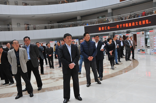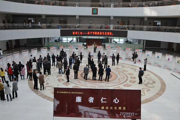 本次展览以“廉者仁心”为主题,分“习近平‘引经据典’谈廉政、传统文化中的家规、历史上的廉政故事”三个单元。展出内容中,习近平总书记关于党风廉政建设和反腐败斗争的重要讲话中所引用的格言警句,生动传神,寓意深邃;山东孔氏家族、浙江郑义门等古代名门望族的家规家训,延续和弘扬了中华民族的“家国”文化,是治家教子、修身处世的智慧结晶;“‘四知却金’的杨震”“‘清官第一’的于成龙”等古代清官廉吏的廉政故事,颂扬了他们勤政爱民的追求、清正廉洁的官德、百折不回的作风和造福百姓的主旨,值得后人谛悟其神,秉承遗风。参展中,学校领导不时停下脚步仔细观看,认真听取工作人员讲解,并详细询问有关情况。整个展览图文并茂,设计精美,引起了参展人员浓厚兴趣,吸引了大家驻足观看,使大家感受到了心灵的洗涤和精神的升华。