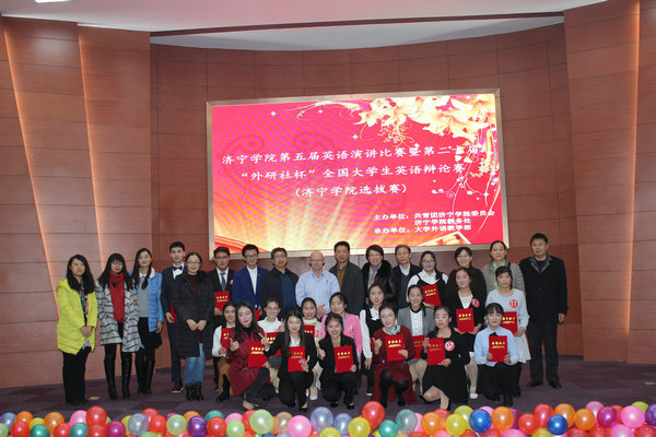 12月21日晚,由团委和大学外语教学部承办的济宁学院第五届英语演讲比赛暨第二十届“外研社杯”全国大学生英语辩论赛济宁学院选拔赛在理科楼报告厅落下帷幕。校党委副书记马恩出席活动,党委宣传部、教务处、学工处、团委和大学外语教学部的负责人一同观看了比赛。此次比赛邀请了曲阜师范大学、齐鲁理工学院以及我校外籍教师、外国语系和大学外语教学部的教师担任评委。