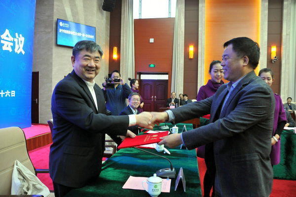 朱松涛宣读《关于成立济宁学院理事会的决定》。会议选举产生了济宁学院第一届理事会理事,表决通过了《济宁学院理事会章程》《济宁学院理事会议事规则》,并选举产生了济宁学院理事会领导机构。
