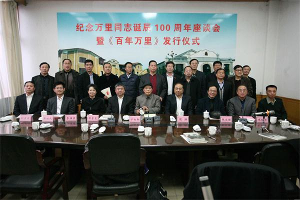 万里长子、中国传记文学学会会长万伯翱,第十届全国政协常委、国家体育总局原副局长、中国老年人体育协会主席张发强,中国文联副主席、中国剧协副主席李维康,解放军出版社副总编董保存,香港特区驻京办助理主任林钊勤以及爱心万里公益基金会负责同志等一行11人,济宁市人大常委会党组书记、第一副主任周洪,济宁市政府副市长张继民,济宁市人大常委会副秘书长申万民,曲阜市委书记刘东波,学校党委书记郁章玉,党委委员、副院长朱松涛,学校有关部门负责人、初等教育学院领导班子成员、师生代表等参加座谈会和发行仪式。仪式由朱松涛主持。