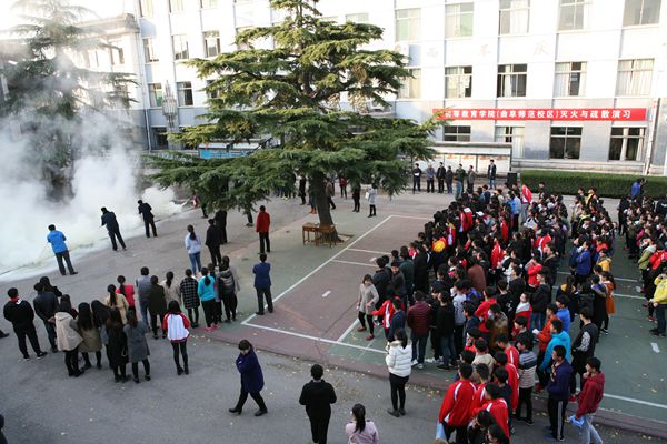 11月15日下午,初等教育学院(曲阜师范校区)与曲阜市公安消防大队联合开展了消防与疏散演习活动。