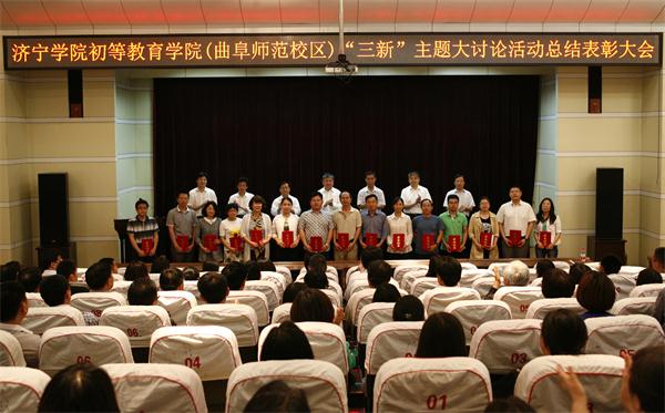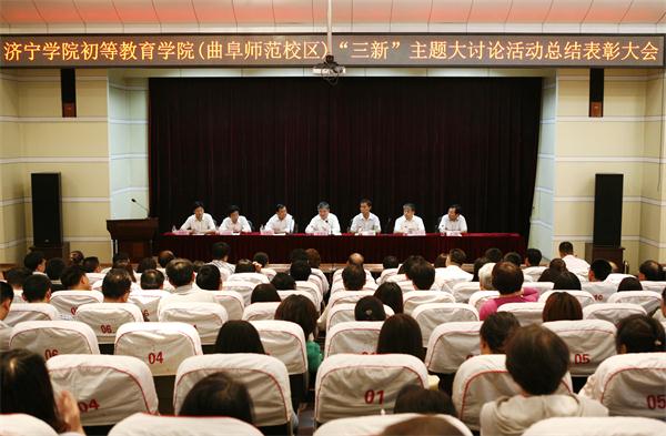 6月3日下午,济宁学院初等教育学院(曲阜师范校区)召开“树立新理念、迎接新挑战、共谋新发展”主题大讨论总结表彰大会。济宁学院党委书记郁章玉出席大会并讲话。初等教育学院(曲阜师范校区)党委书记朱宁波对“三新”大讨论进行了总结,会上对在主题大讨论中表现突出的先进集体和优秀论文获得者进行了表彰。校区全体教职工参加了大会,初等教育学院党委副书记、院长宋思伟主持大会。