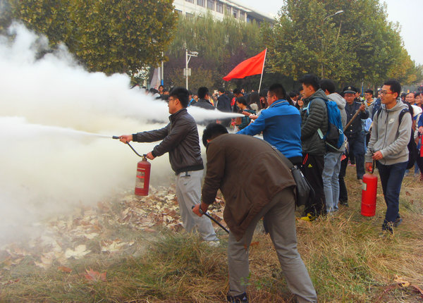 11月6日下午,学校与曲阜市公安消防大队联合开展模拟火场消防实战演习活动。学校领导、党委(院长)办公室、学生工作部、团委 、图书馆、安全保卫处、各系辅导员、各系义务消防队员、大学生消防志愿者大队、学生自律委员会等330人参加了演习活动。