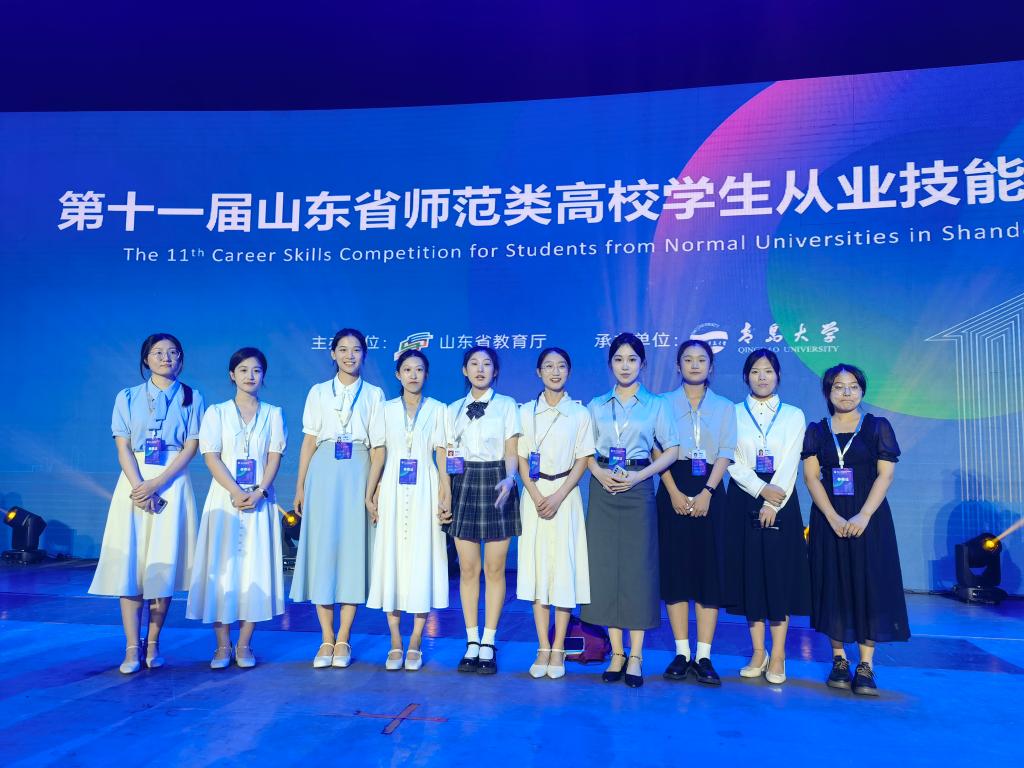7月19至23日,由山东省教育厅主办的第十一届山东省师范类高校学生从业技能大赛省级决赛在青岛大学举行,来自全省55所高校的794名选手参加了比赛。我校32名学生参加了省级决赛,经过激烈角逐,共获得一等奖4项,二等奖5项,三等奖13项,张凤、李淑丽、王静霞、孔莉4人荣获优秀辅导教师。
