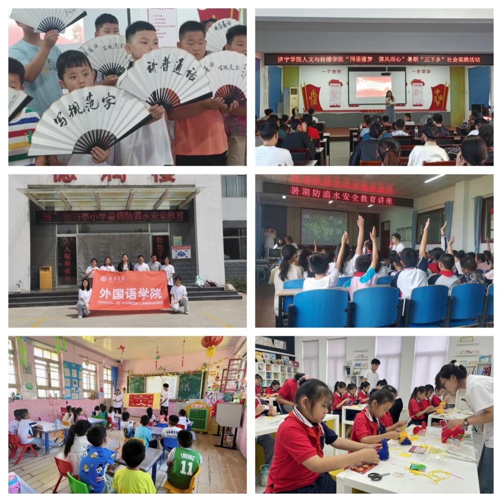 7月8日至7月11日,济宁学院人文与传播学院推普助力乡村振兴实践队、济宁学院外国语学院用爱筑起安全堡垒社会实践队、济宁学院教师教育学院传统艺术育童心社会实践队分别奔赴小雪街道、曲阜尼山、济宁任城等地开展实践活动。队员们纷纷表示:“与孩子们快乐融洽的相处,更加坚定了我们将专业知识与实践相结合,用实际行动助力乡村儿童健康快乐成长,并为祖国教育事业砥砺奋斗的决心。”