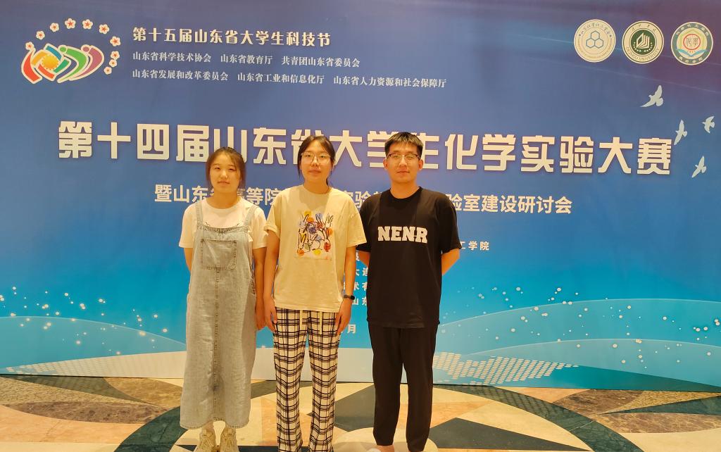 7月12至15日,第十四届山东省大学生化学实验大赛在德州学院举行,我校化学化工与材料学院派出的三名2020级学生参加比赛,经过激烈角逐,张婧瑶、付萌两位同学双双获得一等奖,王震乾同学获得二等奖。再次刷新我校在该项大赛中的最好成绩。